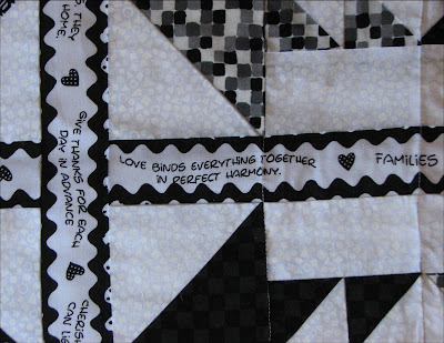 You have a great quilt, here, I love your messages in the fabric! Plus, the yellow, white and black are so cheery, like you ! *smile*